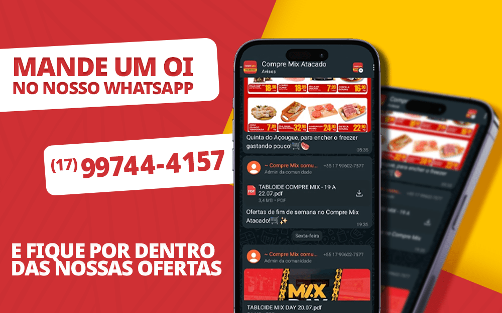 Ou se preferir, mande um oi em nosso WhatsApp e receba nossas Mix Ofertas em seu celular.
