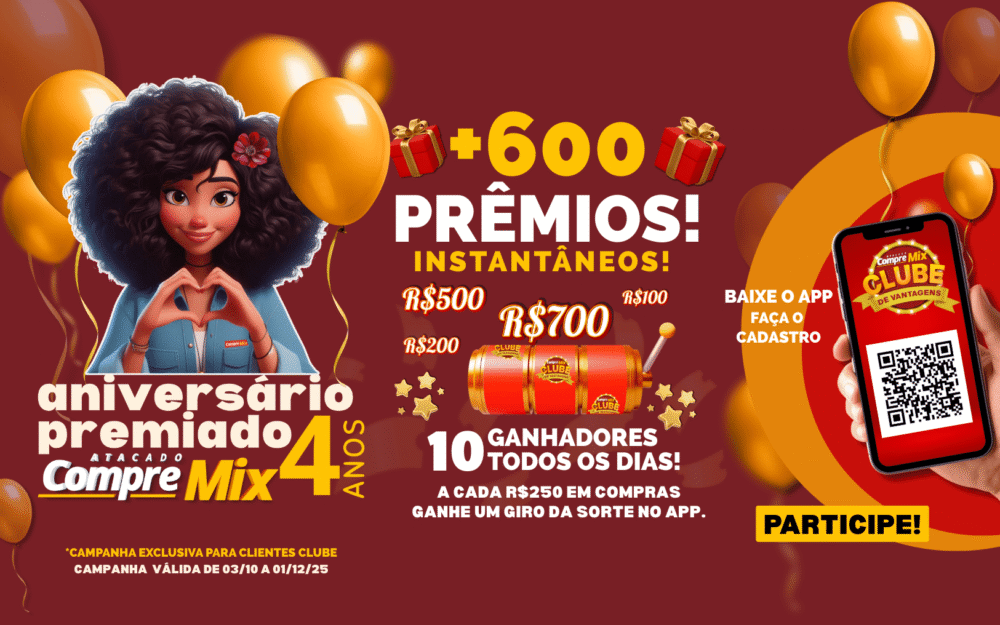 Conheça nossas promoções e eventos, e ainda fique por dentro de tudo o que acontece no Compre Mix Atacado